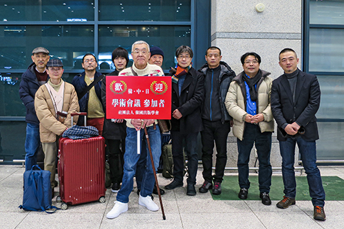 到着ロビーで別便でソウル入りしたグラフィック・デザイナー・狩野正博さん、中国・西安の西北大学芸術院教授の孫明遠さん、ニューヨークからの帰国途中だという中国・北京中央美術学院教授の劉釗さん、北京の北京北大方正電子の黄学鈞さんと汪文さん達と合流。