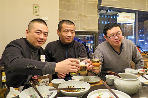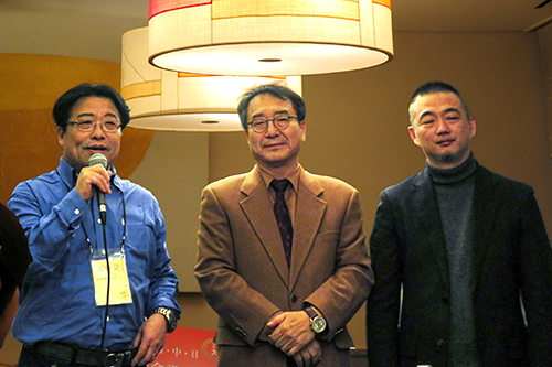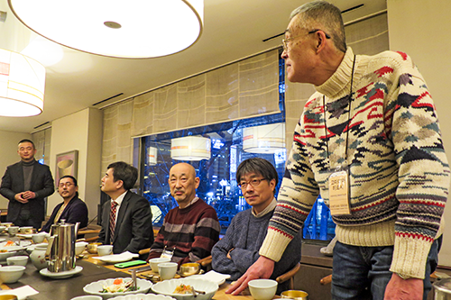 ハンミリでの夕食会は韓国出版学会主催。同学会役員の権さん、金さんの韓国語の歓迎挨拶を劉さんが韓ー日に、孫さんが日ー中に訳しながら宴は進む。