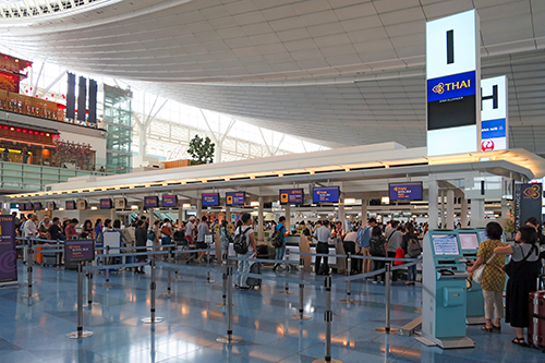 モノレールは空港ビルの三階に到着。改札を出て直ぐ右手にチェックインカウンターが並んでいる。改札口からチェックインカウンターまでのこの近さは気分的にも随分楽で嬉しい。