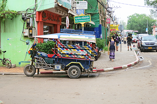 ファランスワギン通りの角で客待ちをするトゥクトゥク。 |