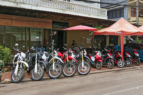 この界隈は軒先に原付バイクやオフロード車を並べる店が多い。全てレンタルバイク屋だ。