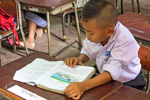 開いている扉を覗いて見ると子供たちが机を並べてテキストを読む練習をしている。