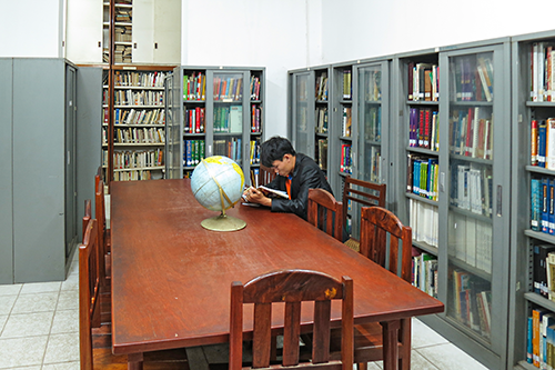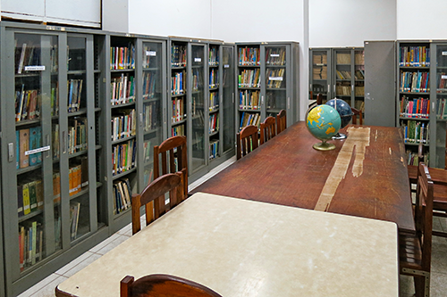 上の廊下に沿って同じ大きさの閲覧室が並んでいる。