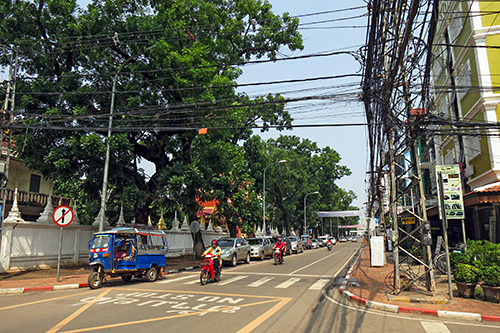 小さなホテルや宿泊施設が並ぶノーケオクンマーン通りを北上。