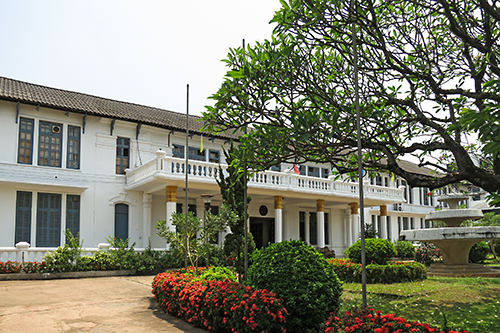 二階建ての白い建物は1925年にフランス植民政府よって建てられたコロニアル・スタイル。1945年のラオス独立宣言はここで行われたそうだ。