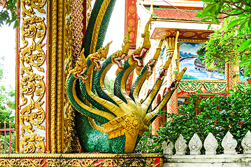 門の右脇で七頭のナーガ(蛇)が寺院を守っているのも珍しい。