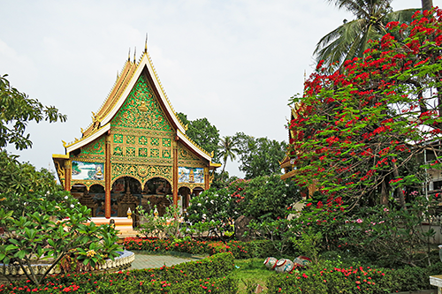 16世紀に建立されたこの寺院は、1827年のシャム(現タイ)軍侵攻時に破壊されたがその後再建され。その後、さらに数回にわたって改装されている(RENOWN TRAVELより要約)。