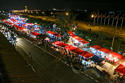メコン川とナイトバザール、ファーグム通りをパノラマ写真にしてみた。