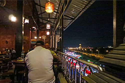 4階はファーグム通り(メコン川)に面した方がオープンになっており、目の前のメコン川を一望できる。