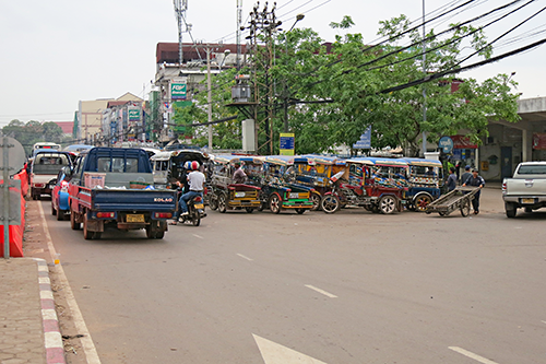 トゥクトゥクで詰まったマホーンソット通り。 |