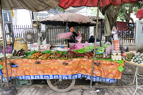この病院にやってくる人が多いと言うことなのだろう、病院の前に果物や野菜を並べた屋台が出ている。