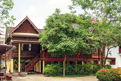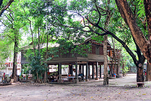 境内の奥に建つ高床式の建物はワット・チャンタブリーの境内でも見かけたように僧坊だろう。