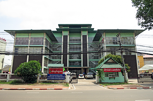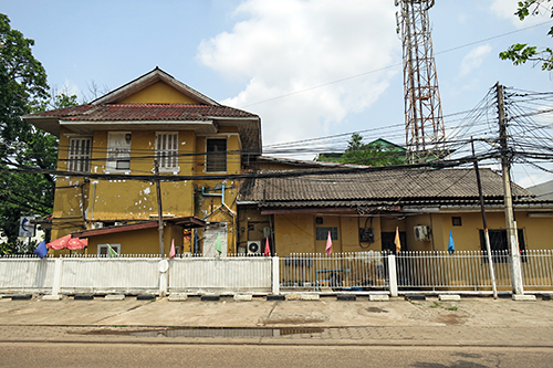 チャンタクンマーン通りの角に裏庭に鉄塔を持つ民家があるが、ラオ・テレコムだ。