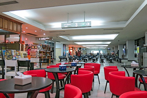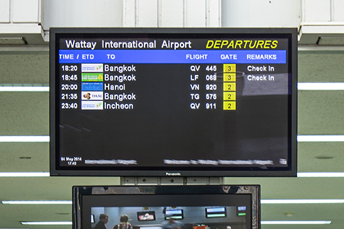 ホテルに戻って荷造り再開。3時にチェックアウト。ホテルの前からワッタイ国際空港までトゥクトゥクで15 分。50,000Kip(約600円)。