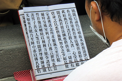 中殿の周りも回廊の下もお経を上げる熱心な信者が陣取っている。
