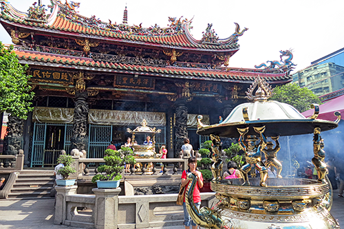 龍山寺は1738年に福建省泉州から台北にやってきた人達よって、福建普江安海龍山寺の末寺として建てられた台北市内最古の寺院。国家古蹟であると共に、台北101、故宮博物院、中正紀念堂と並ぶ台北市の「四大外国人観光地」になっている。