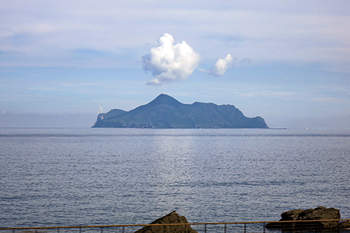 列車が台湾北端を回り込んで太平洋岸に出て間もなく、宜蘭の頭城駅の辺りで沖合10kmほどに見えてくるのは亀山島。事前申請が必要だが島に上陸して観光することもできるようだ。