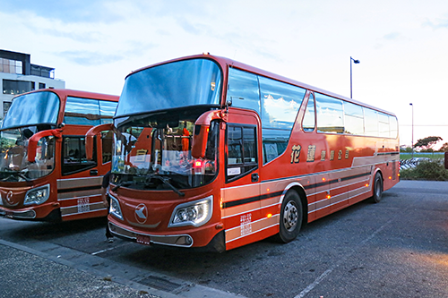 駅前から2台のバスに分乗、琵琶湖に向かうのだが既に午後6時を回っている。