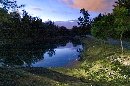 ガイド氏がここが琵琶湖だ手を振って示す方を見ても真っ暗で何も見えない。勝手に思い込んでいた照明のない真っ暗な湖に連れてこられた意味が分からない。カメラの感度を上げて無理矢理シャッターを押したのが下の写真。