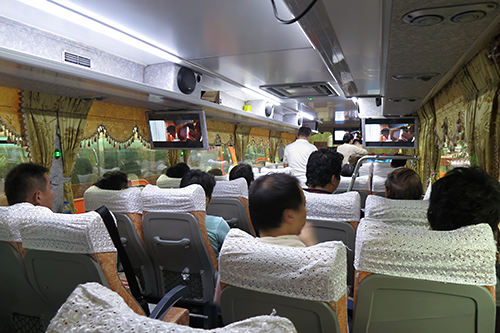 老爺大酒店に向かうバスの中はカラオケ大会になった。 |