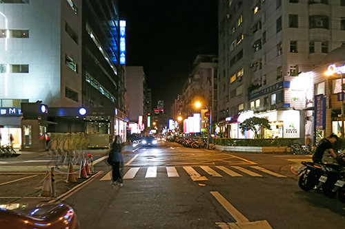敦化南路から忠孝東路の交差点で右折すれば400メートルほどで神旺大飯店に戻る。