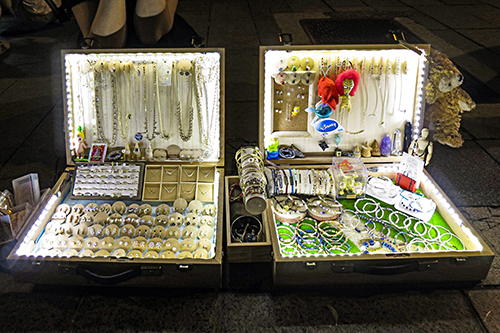 誠品書店を出ると書店前の歩道上にイルミネーションを仕組んだアタッシュケースを並べて、アクセサリーを売る若い露天商が群れていた。