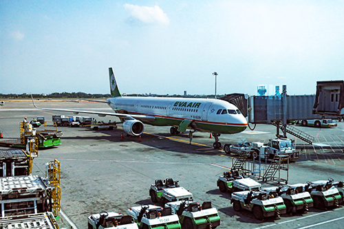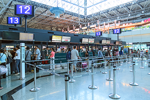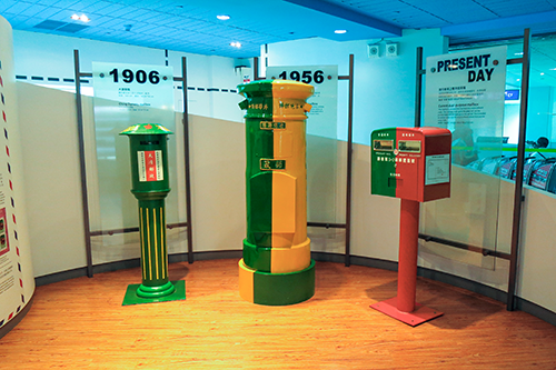 出国手続きを済ませて搭乗待合室へ。台湾の郵便ポストの変遷を実物で展示してあった。