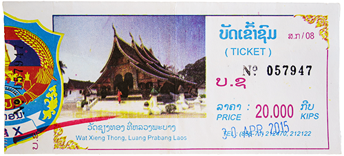 通用門の中に拝観料を徴収するテーブルが出ていた。拝観料は20,000Kip(約302円)。