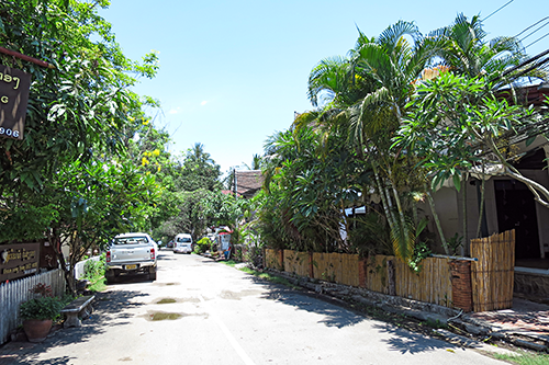 | 細い露地の突き当たりがワット・シェントンの通用門。 |