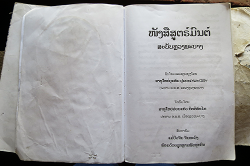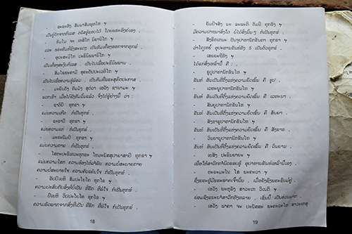 | 本堂の隅に置いてあったラオ語のテキスト。 |