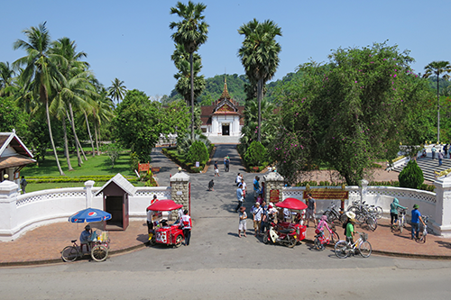 道路の名前がサッカリン通りからシーサワンウォン通り(Sisawangvon Road)に変わる、ヴィラ・センスークから900メートルほど歩いた所がルアンパバーン国立博物館。
