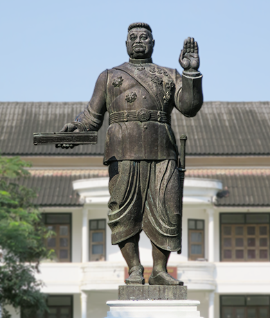 チケット売場の奥に建つのはシーサワンウォン王像。ビエンチャンのシーサワンウォン公園に建っている像と全く同じ像に見えるので、鋳型は同じなのだろう。