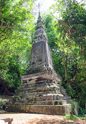 本堂から少し離れたプーシーの木立の中に仏塔が建っているが、この寺院の縁の仏塔だろう。