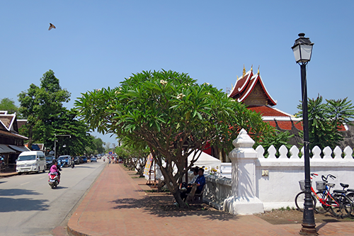 | 朝8時のルアンパバーンのメインストリート、サッカリン通り。 |
