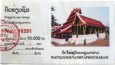 門を入いり左手にあるシャッターを開けたばかりのチケット売場でチケットを購入、30,000Kip(約453円)。