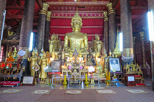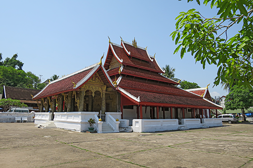 ルアンパバーン様式による寺院建築の典型とされる本堂の五層の屋根はワット・シェントンよりも美しいとされている。