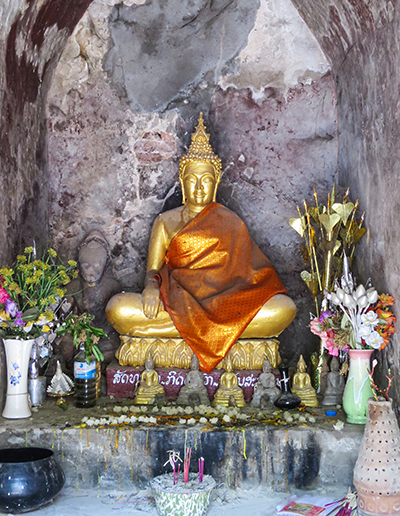 境内の片隅に古ぼけた石積みのお堂や仏塔があり、お堂の中には小さいが仏像も安置されている。