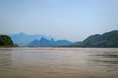 バーン・サンハイを10時半過ぎに出発、赤茶色のメコン川をひたすら遡る。
