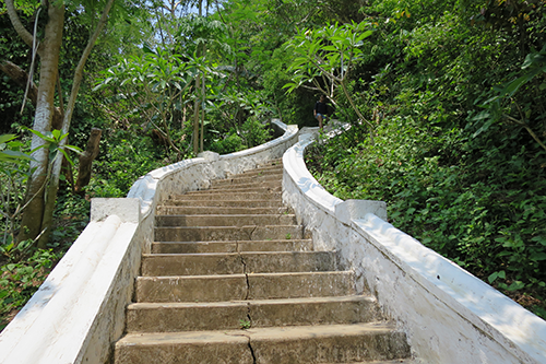 タムティン洞窟を抜けて坂道と長い石段を登り続けること5分余り。