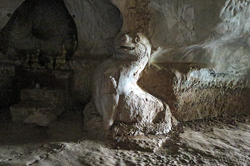 扉を開けて洞窟内に入る。洞窟内は照明がないので進むほどに真っ暗になる。持参の懐中電灯が役に立った。