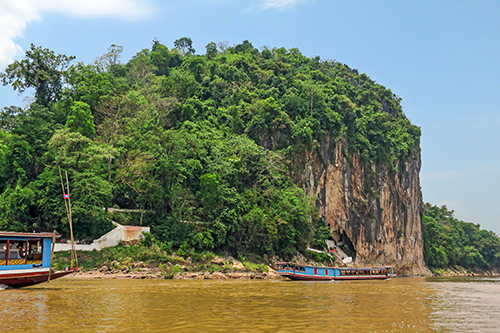ルアンパバーンの船着場を出発してから2時間30分、距離にして25キロメートル、丁度メコン川とウー川の合流地点にあるパークウー洞窟(Pak Ou Caves)に到着。