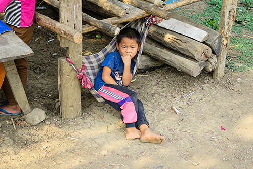 エレファント・キャンプを後にして10分も走ったろうか、もう一箇所寄ったところはモン族の村(Google Map上で場所を特定できない)。