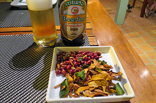 ビールと一緒に昨日のランチの時にも出してくれた「ラオスのカリカリ・ポリポリ珍味」を持ってきてくれたのはサービスなのだろう。