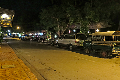 ツアーはここで解散。シーサワンウォン通りはこれからナイト・マーケットの準備が始まるので通れないとは運転手の言い訳。他の車はドンドン入っていくのにだ。