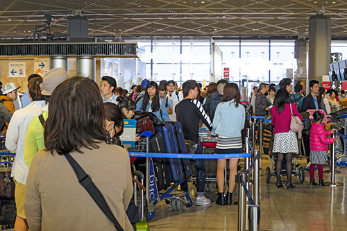 やむなく出発2時間前の8時前に成田空港第一ターミナルのチェックインカウンターに並ぶも、既に長蛇の列。