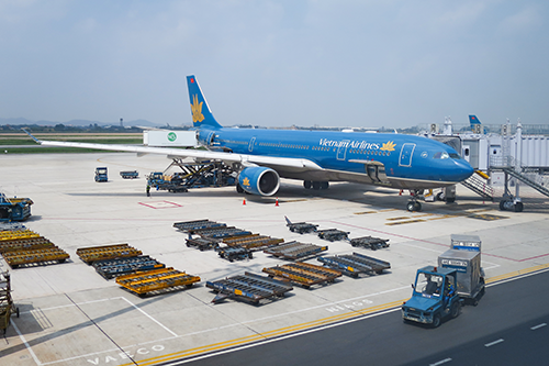 | ノイバイ国際空港に着いた成田からの搭乗機。 |