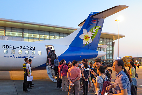 バスが停まったのは地上から直接乗り込む可愛らしい機体だ。運行もノイバイ空港からルアンパバーン空港までのラオス国際航空。