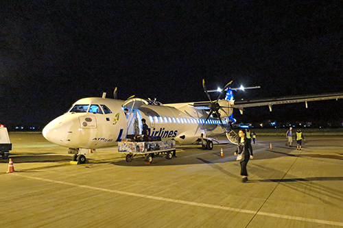 | ルアンパバーンに着いた搭乗機、ATR-72-200。 |