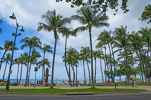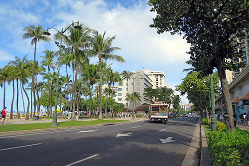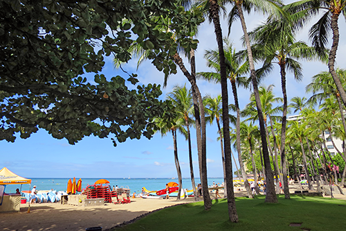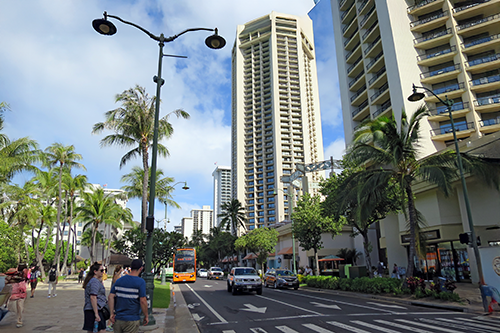 | カラカウア通りを渡ればワイキキ・ビーチ。 |