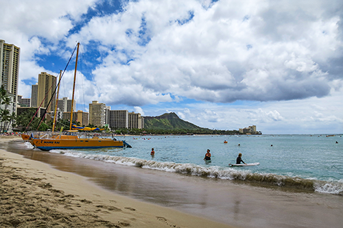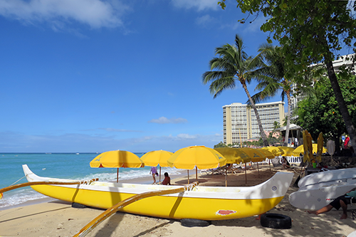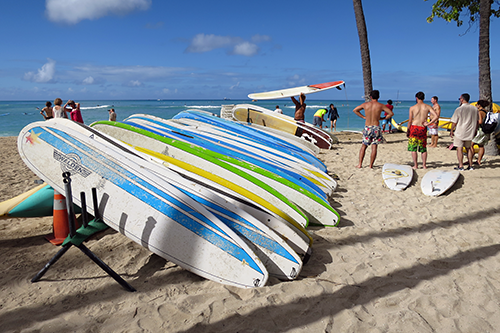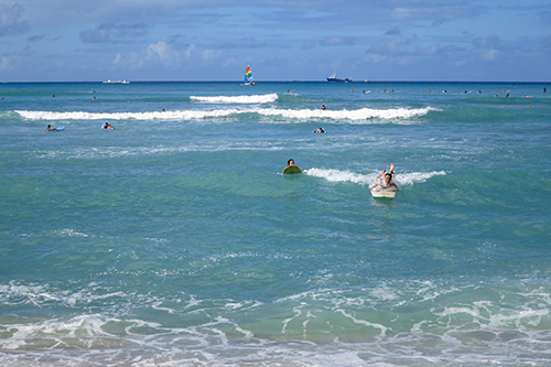 ここでツアーのオリエンテーションを受けてから、第二班が到着するまでの小一時間を利用してワイキキ・ビーチへ。